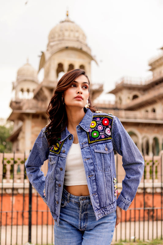 Timeless Fusion Denim Jacket with Indian Handcraft Details