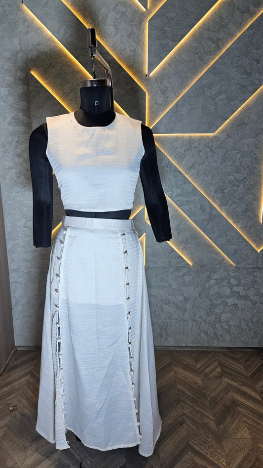 026-C-HOB Elegant Handwoven Cotton Crop Top – Sleeveless, Off-White – Made in India