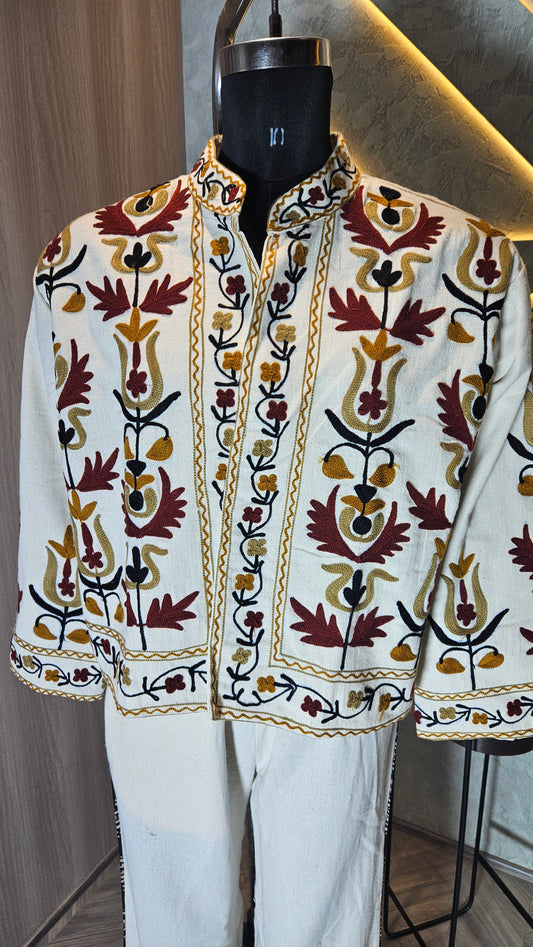 029-J-HOB Handcrafted Kashmiri Embroidered Cotton Jacket Top – Made in India