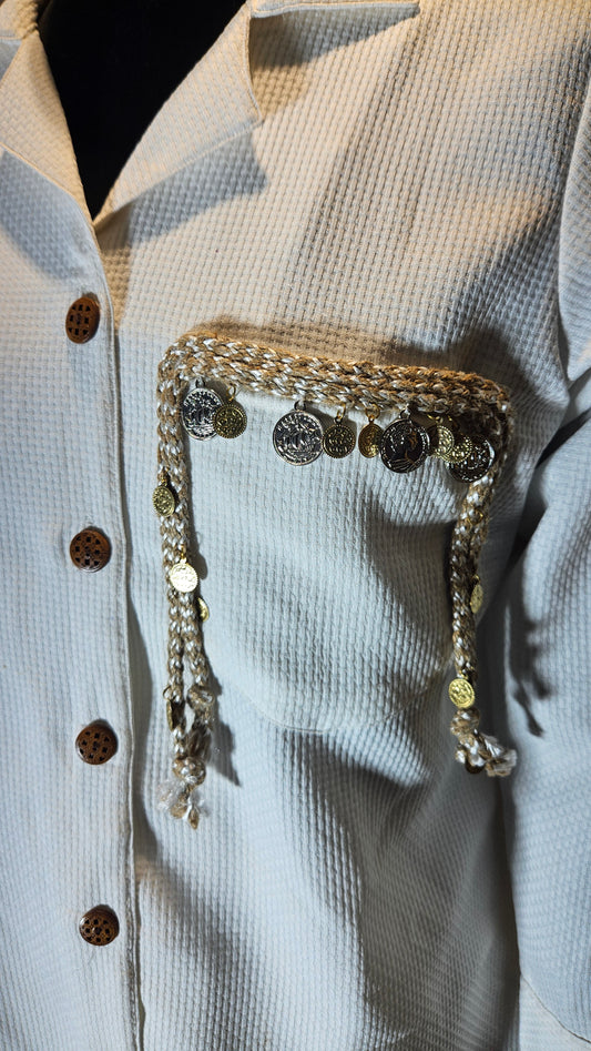 0158-J-HOB-Boho Chic Embroidered Denim Jacket with Mirror Work - Made in India