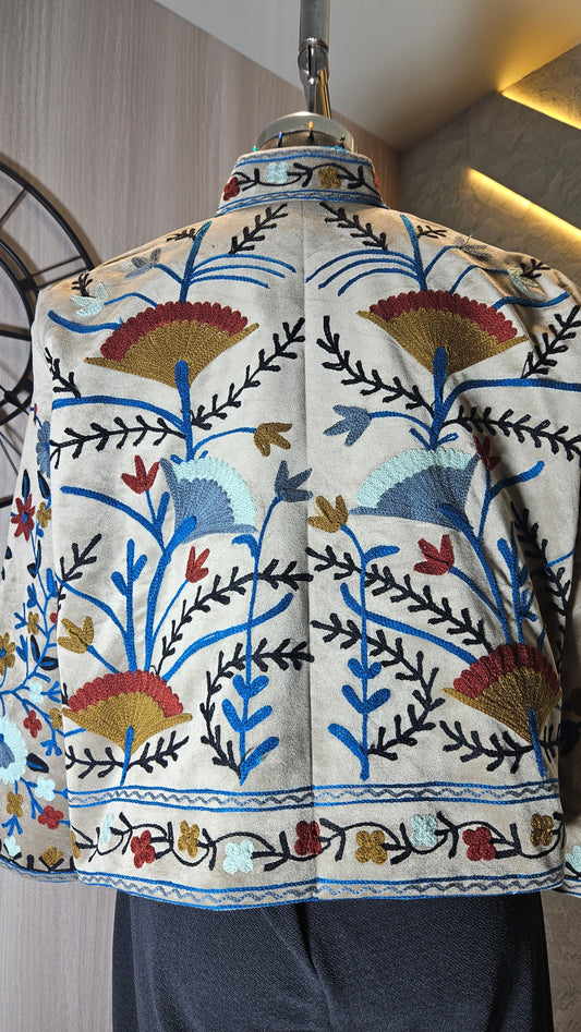 0160-J-HOB-Handcrafted Kashmiri Suede Embroidered Jacket - Made in India