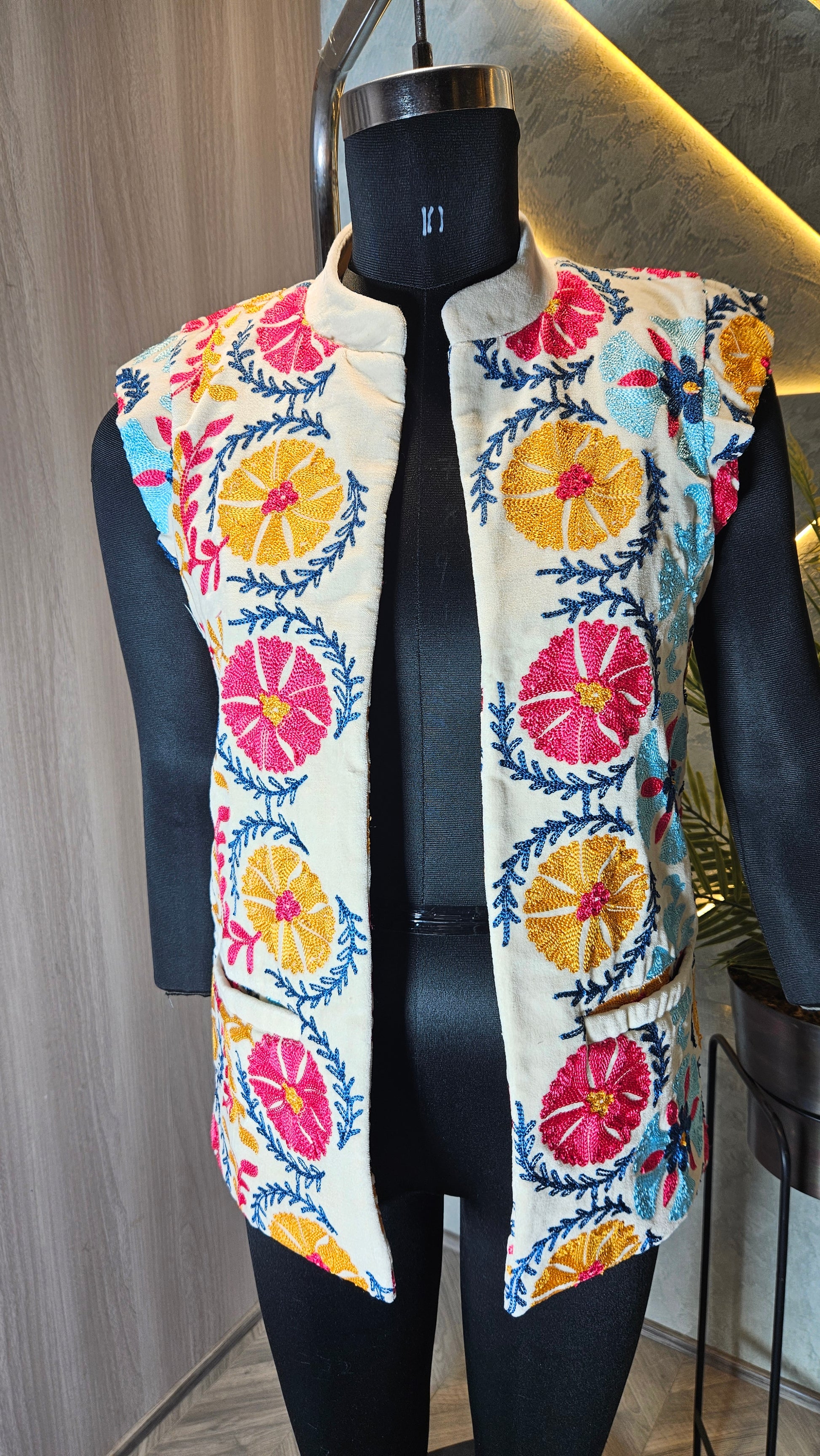 Handcrafted Embroidered Floral Cotton Vest – Boho Chic Jacket – made in India (only bulk) (MOQ 1000)
