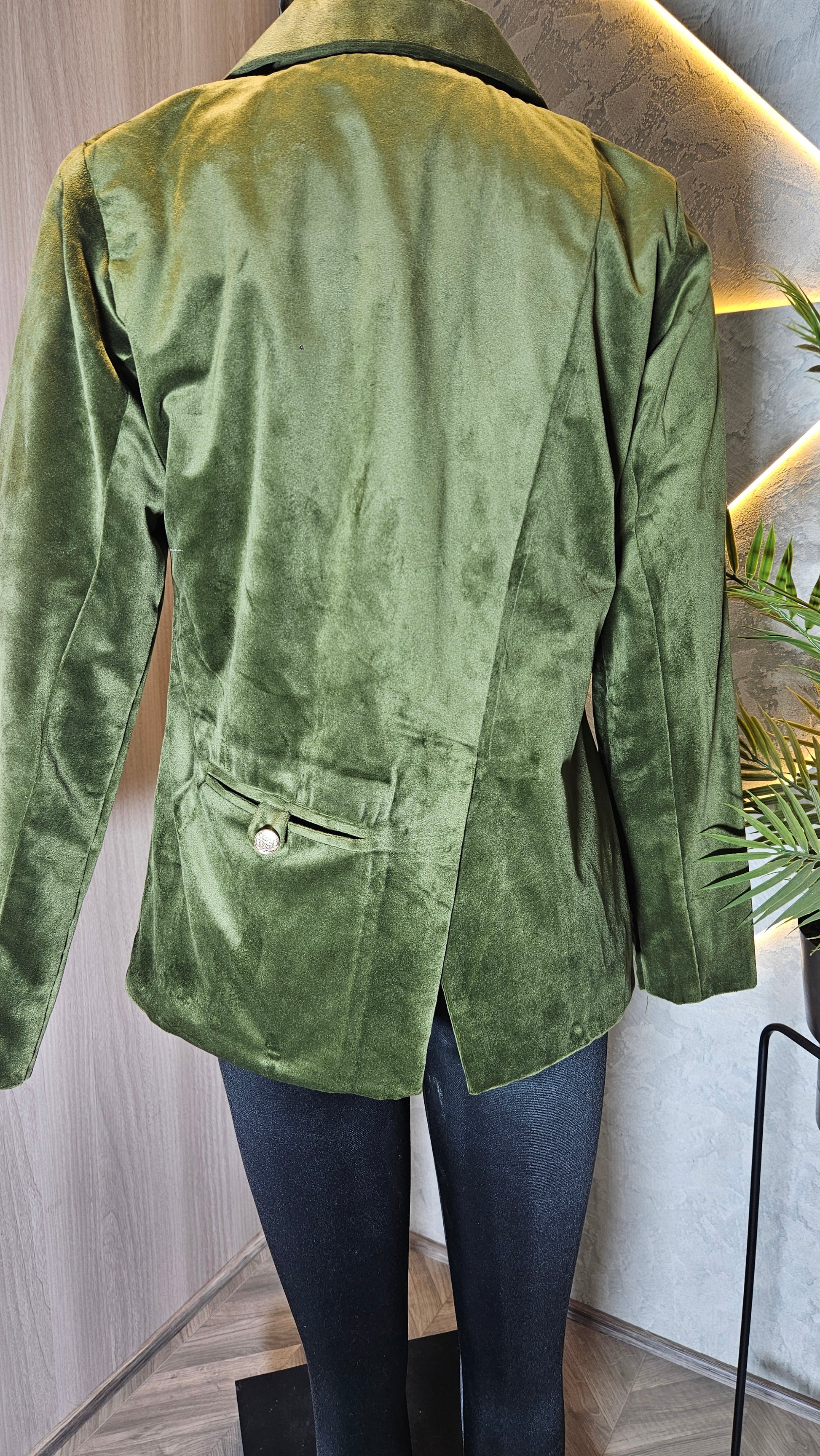 0116-J-HOB- Velvet Olive Green Blazer Jacket – Women’s Elegant Outerwear - Made in India