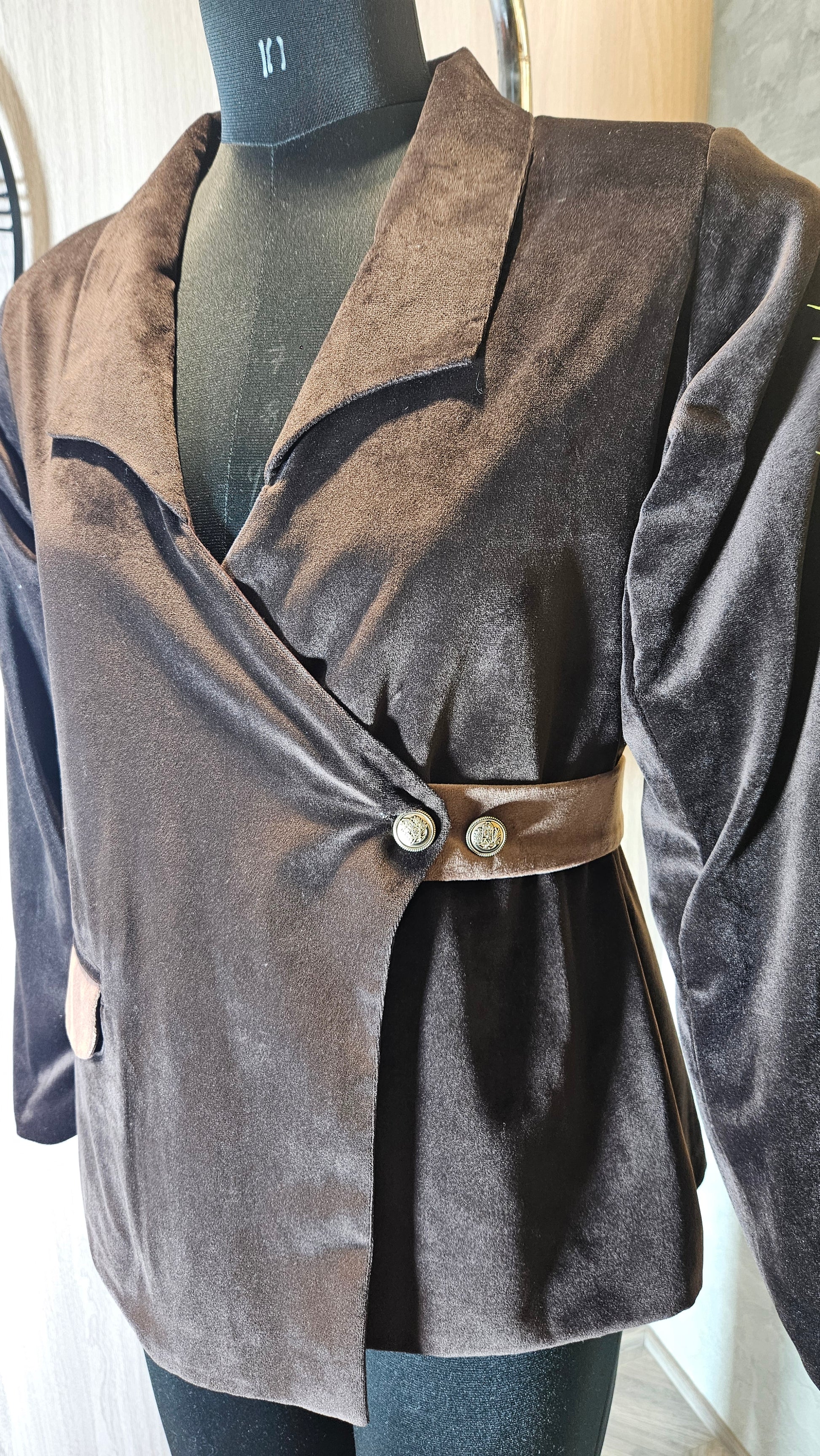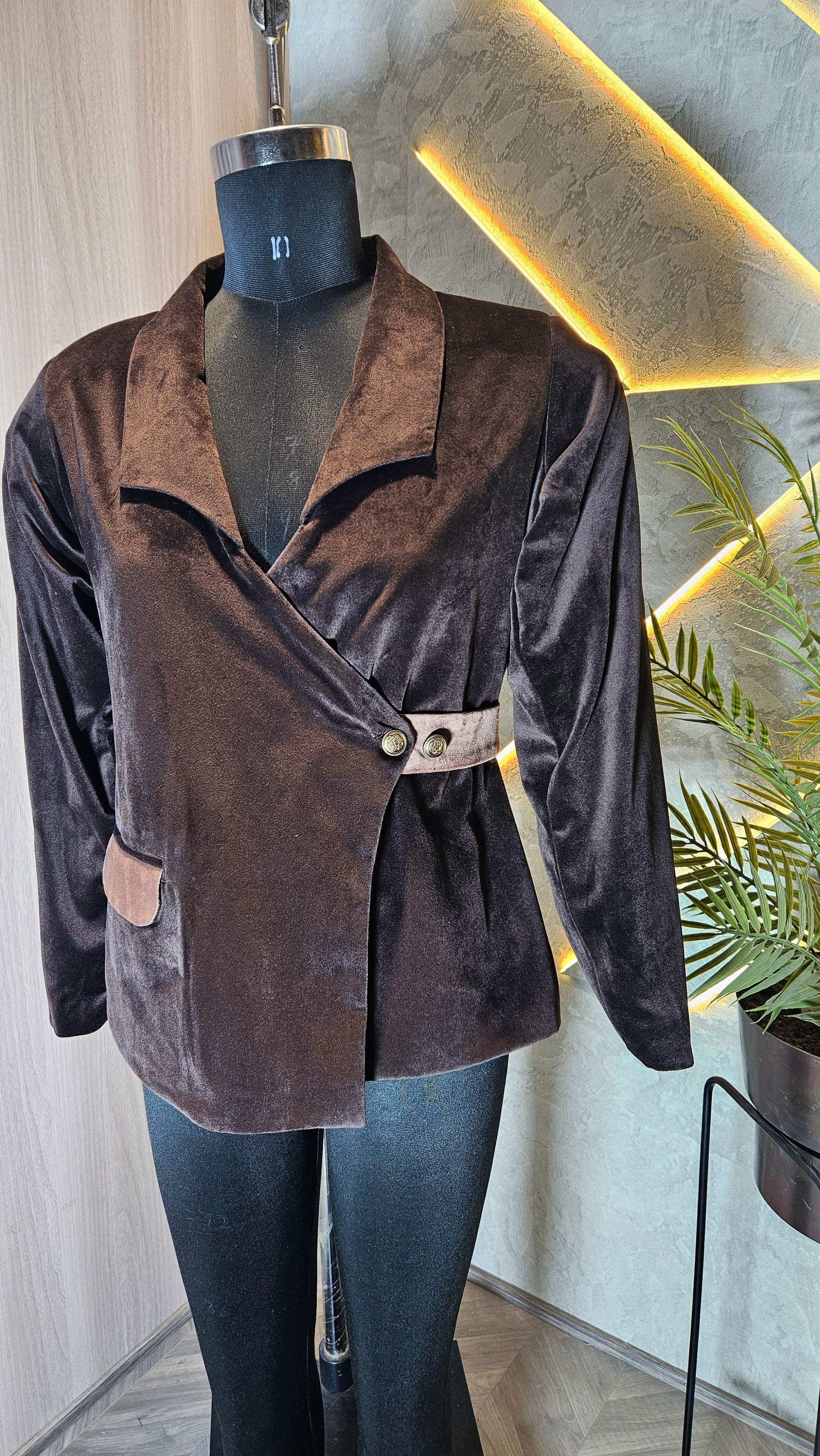 Elevate your wardrobe with this luxurious Women's Velvet Blazer Top, designed for the modern, style-conscious woman. Made from high-quality soft velvet fabric, this chic piece comes in a rich chocolate brown hue, perfect for both formal and semi-formal occasions.