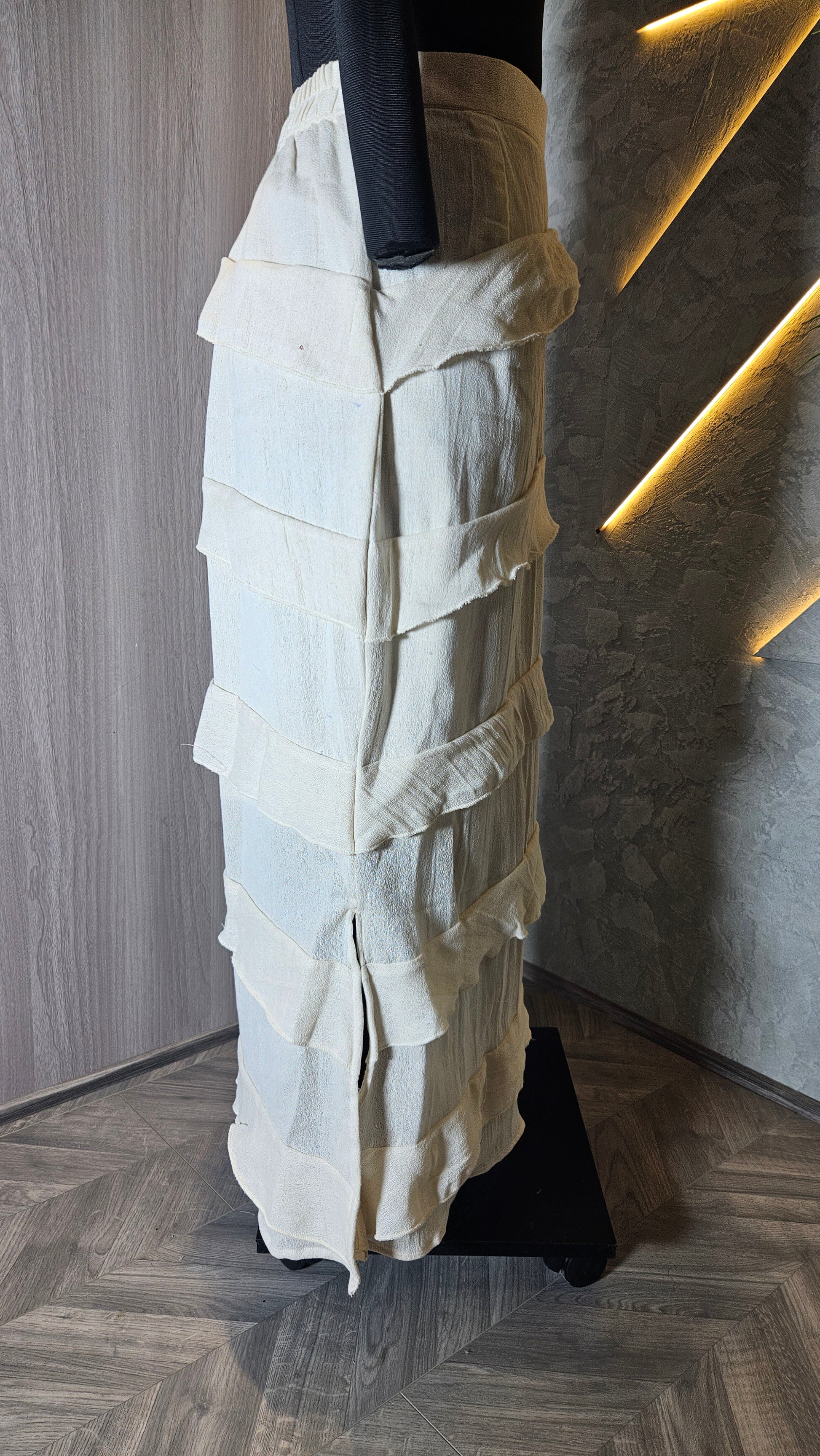 Elevate your ethnic and boho-chic collections with our Handcrafted Layered Cotton Maxi Skirt, designed for comfort, elegance, and effortless style. Made from premium quality 100% natural cotton, this skirt features a beautifully textured fabric with diagonal layered panels that add volume and movement.