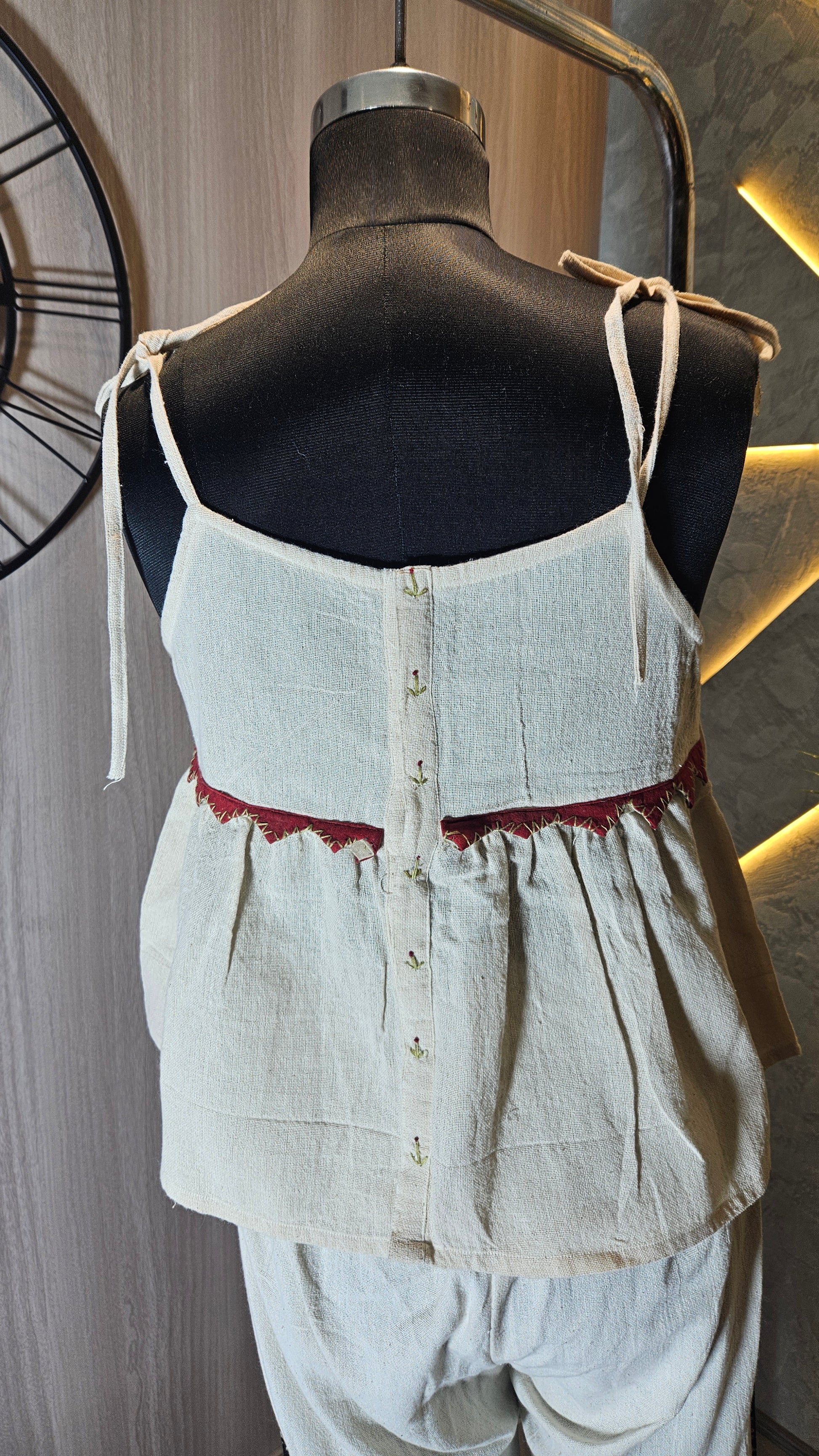 Discover the charm of Indian craftsmanship with this handmade cotton top, designed for comfort and style. Made from 100% natural cotton fabric, this sleeveless top features adjustable tie-up shoulder straps, ensuring a perfect fit for all body types.