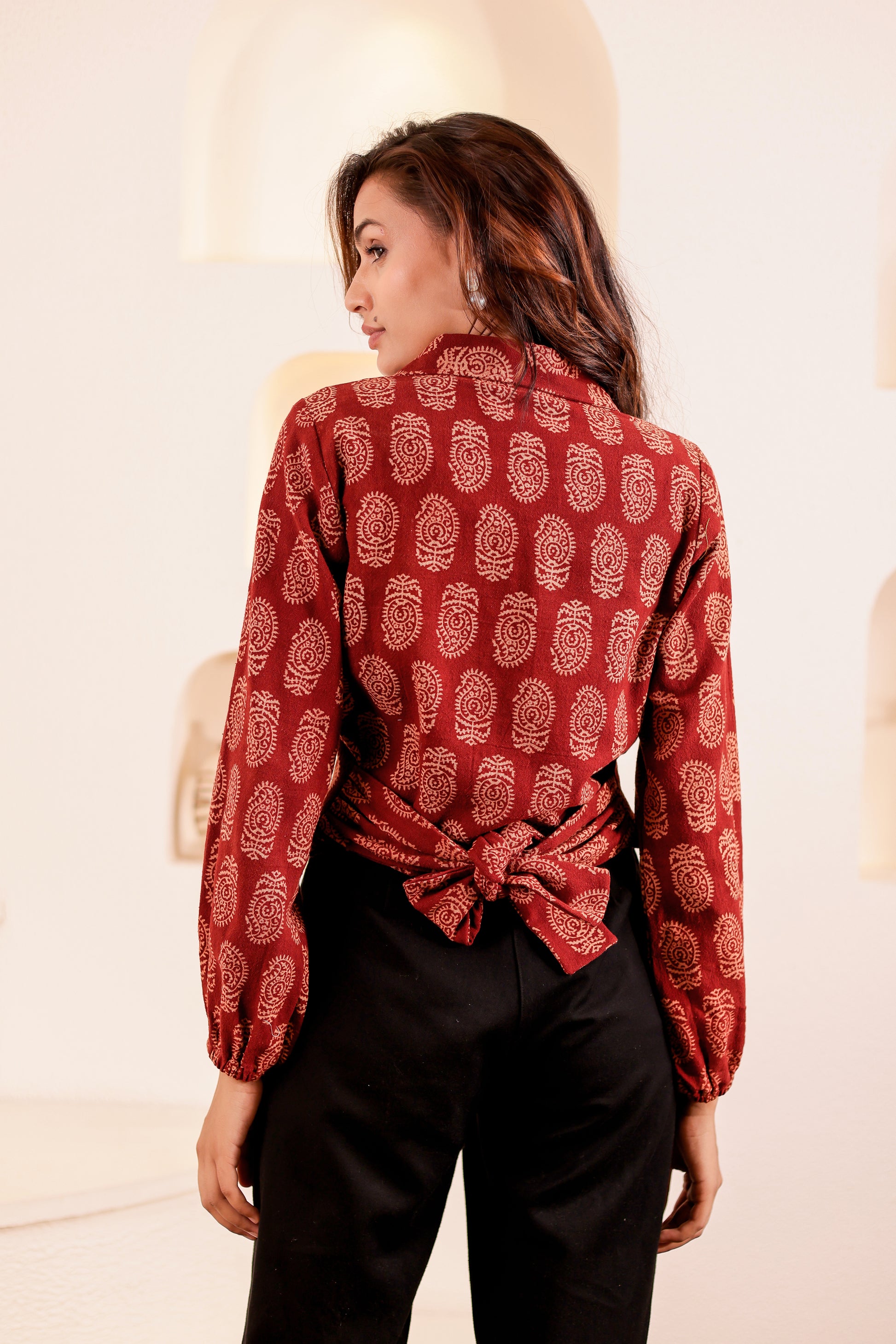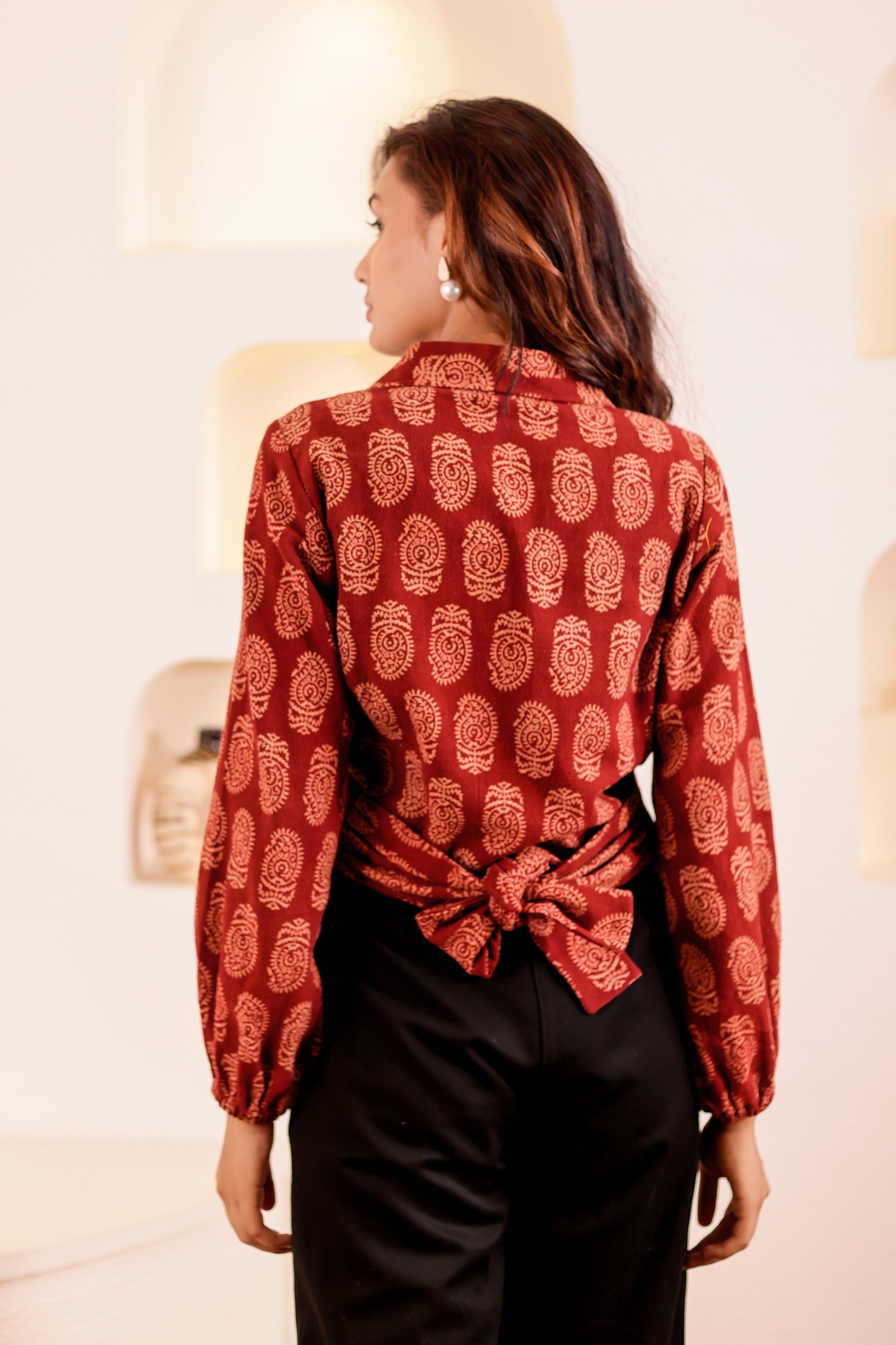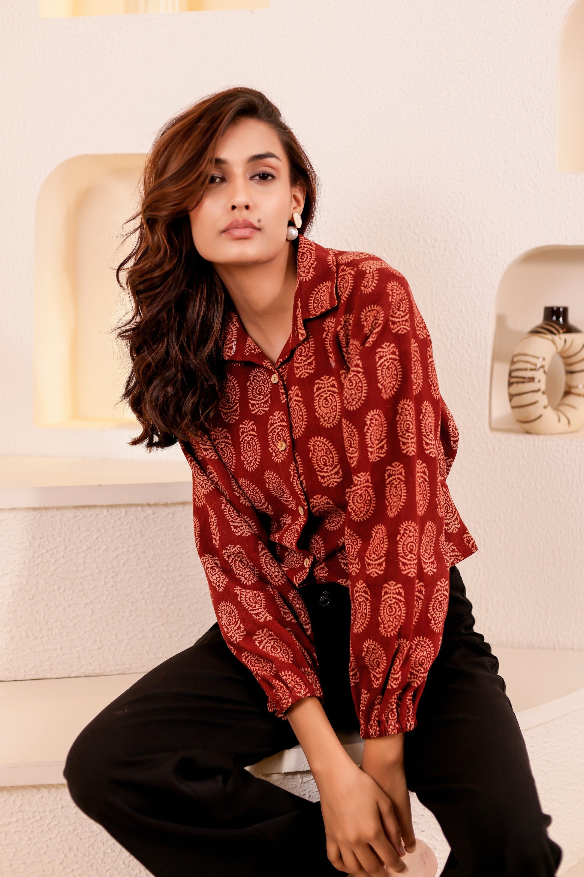 Introduce timeless elegance to your collection with our Handcrafted Block Print Cotton Shirt in a rich rust red hue. Made from 100% breathable cotton, this shirt features traditional Indian paisley motifs meticulously hand block-printed by skilled artisans. The full sleeves, wooden buttons, and relaxed yet structured silhouette offer a perfect fusion of ethnic craftsmanship and contemporary style.