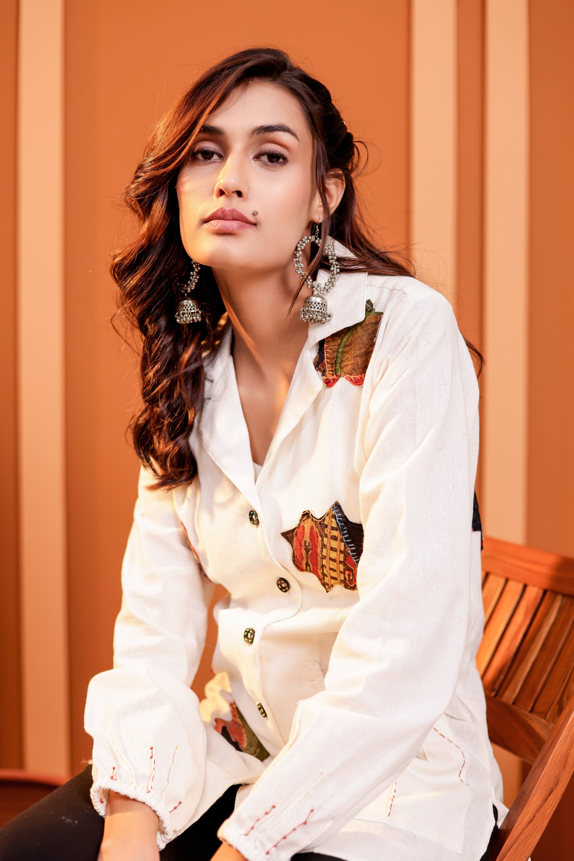 With a relaxed silhouette, full sleeves with delicate smocking at the cuffs, and wooden-look buttons, it blends ethnic charm with global fashion sensibility. Ideal for casual chic or semi-formal occasions, this shirt is a standout piece for conscious buyers who value craftsmanship and sustainable fashion.