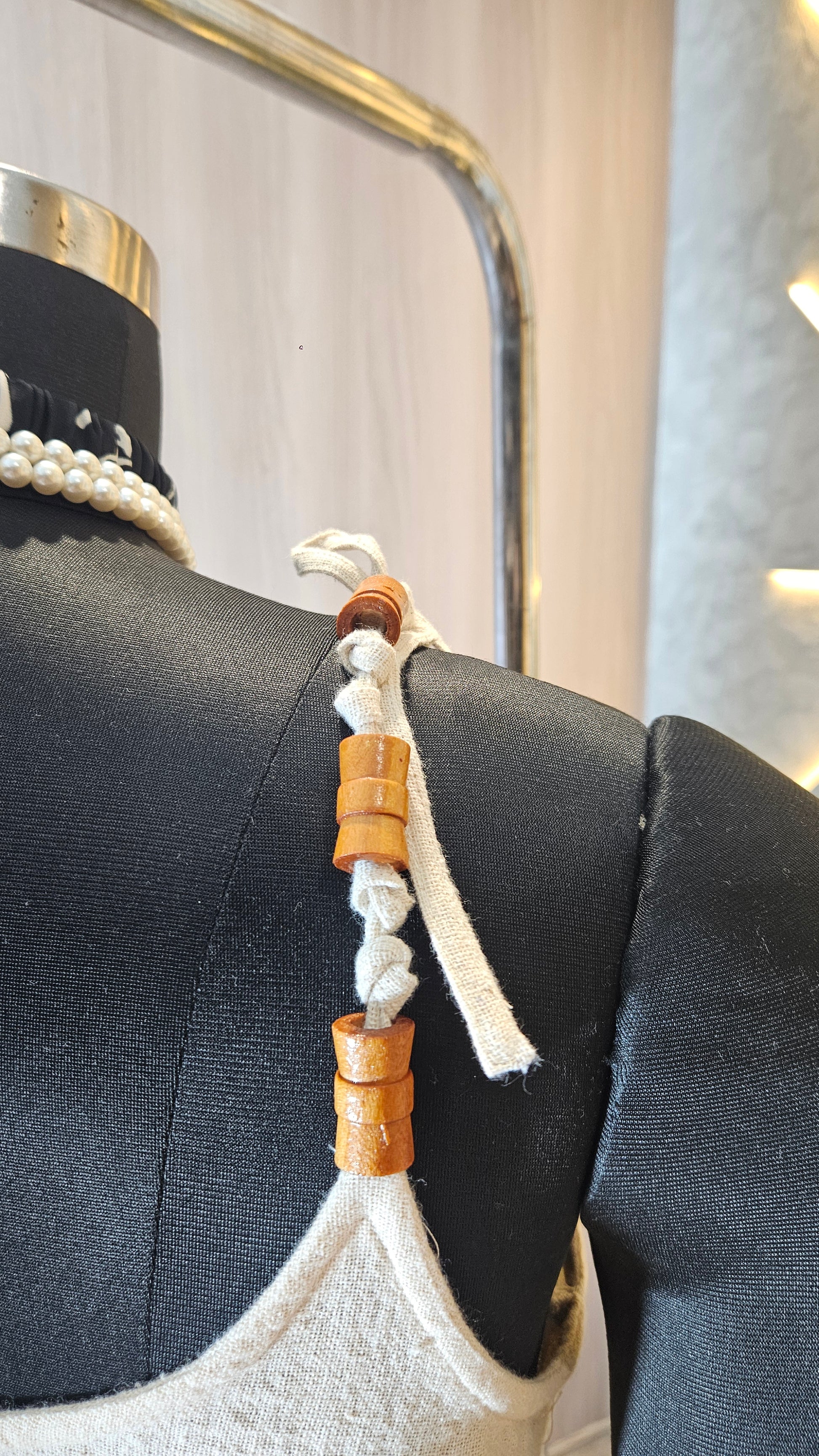 Straps: Unique beadwork shoulder straps with adjustable tie-knot detailing