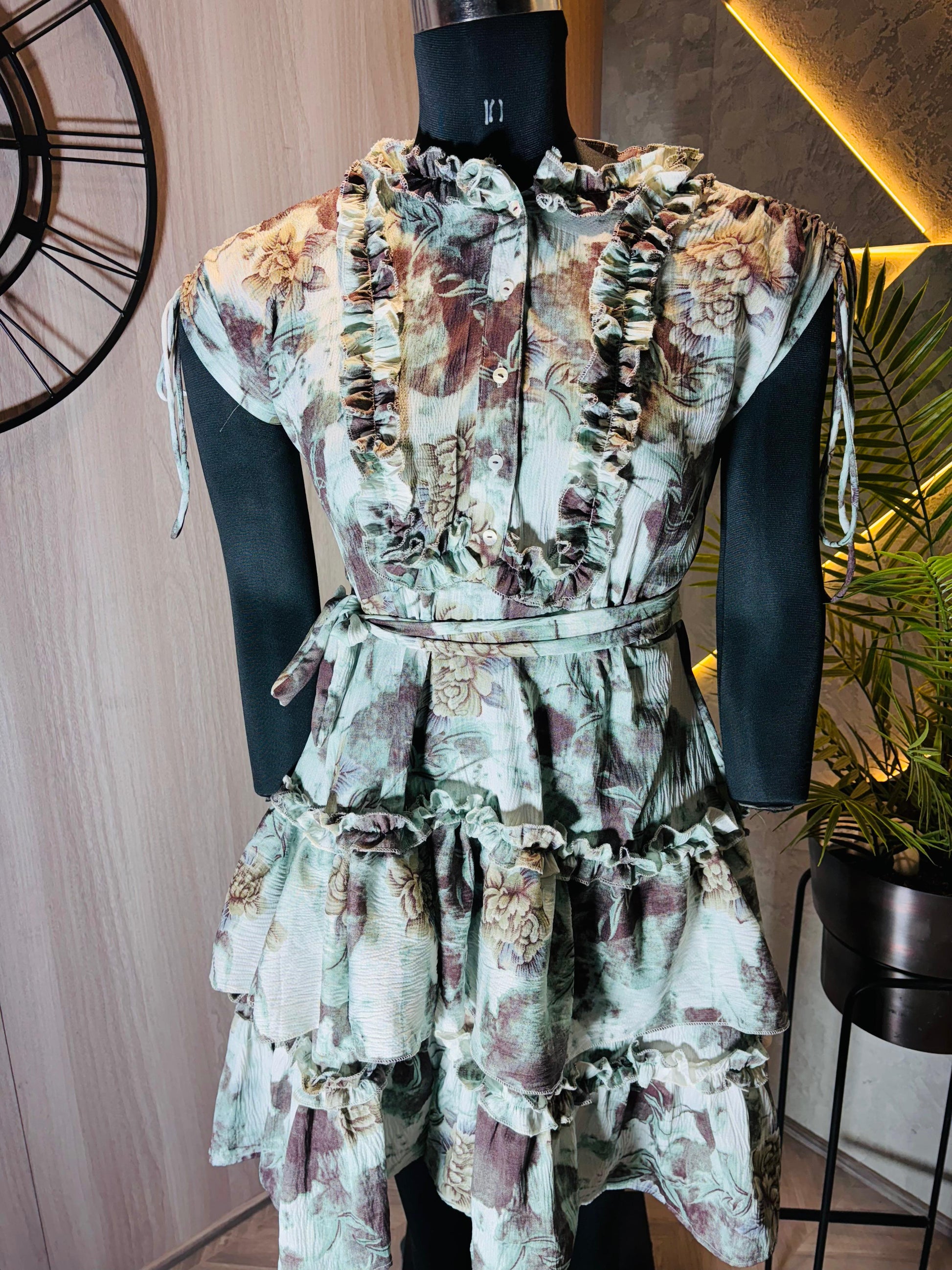 Elegant Floral Ruffled Tiered Short Dress Top – made in India (only bulk) (MOQ 1000)