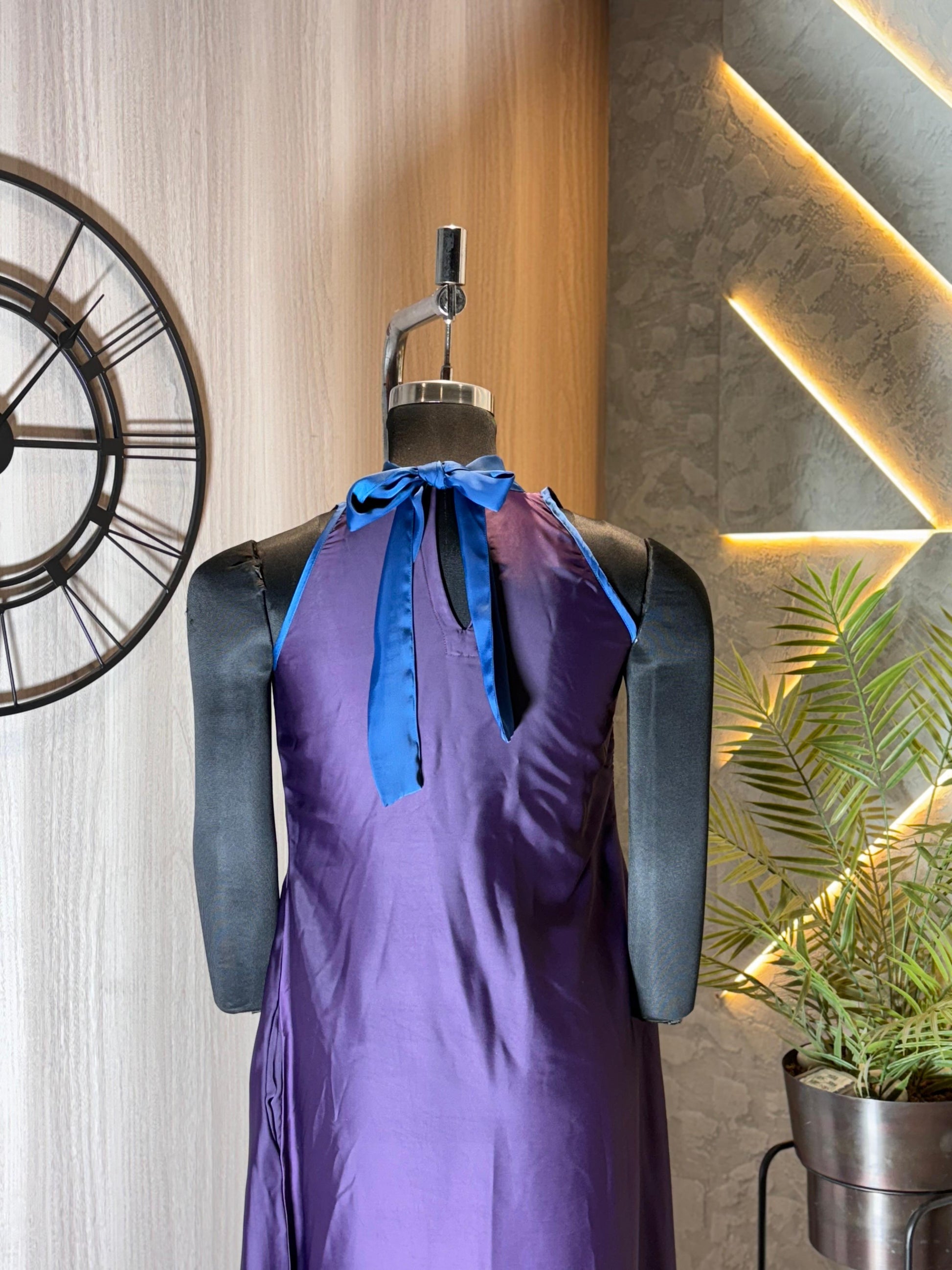 Elegant cotton Halter Neck Maxi Dress with Bow Tie – Purple & Blue – made in India (only bulk) (MOQ 1000)