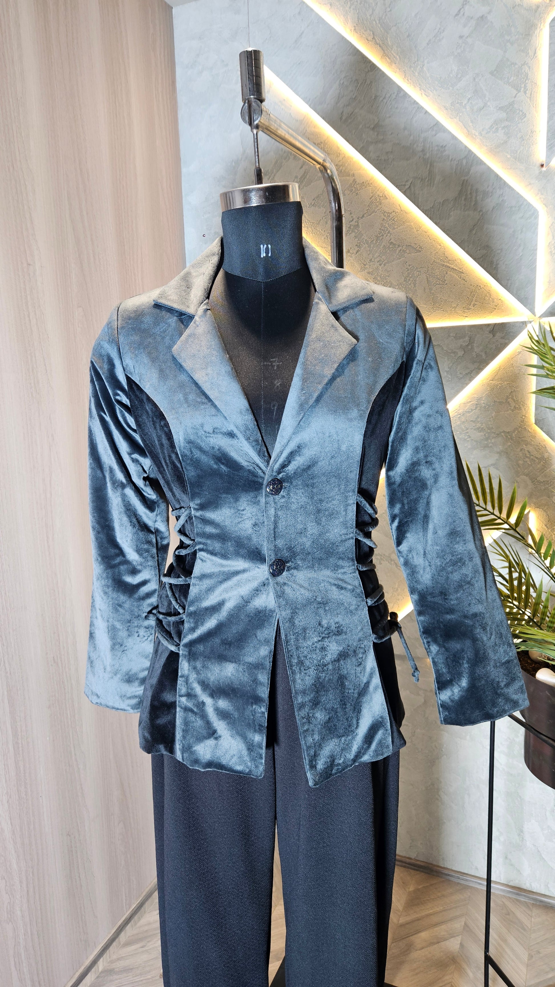 044-J-HOB : Women’s Velvet Tailored Blazer Top with Side Lace Detailing – Made in India