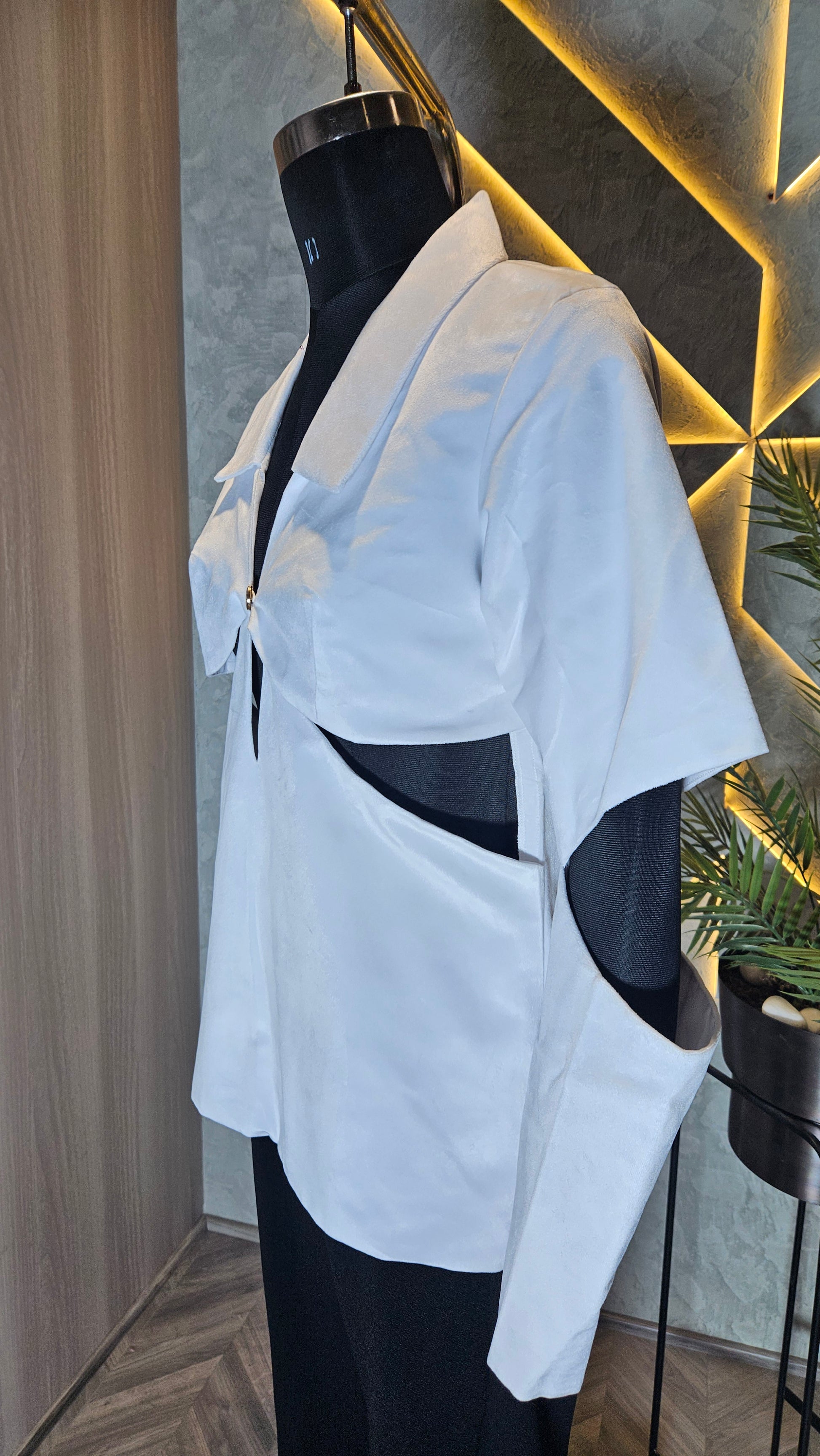 045-J-HOB : Contemporary Cut-Out White Collared Top– Made in India