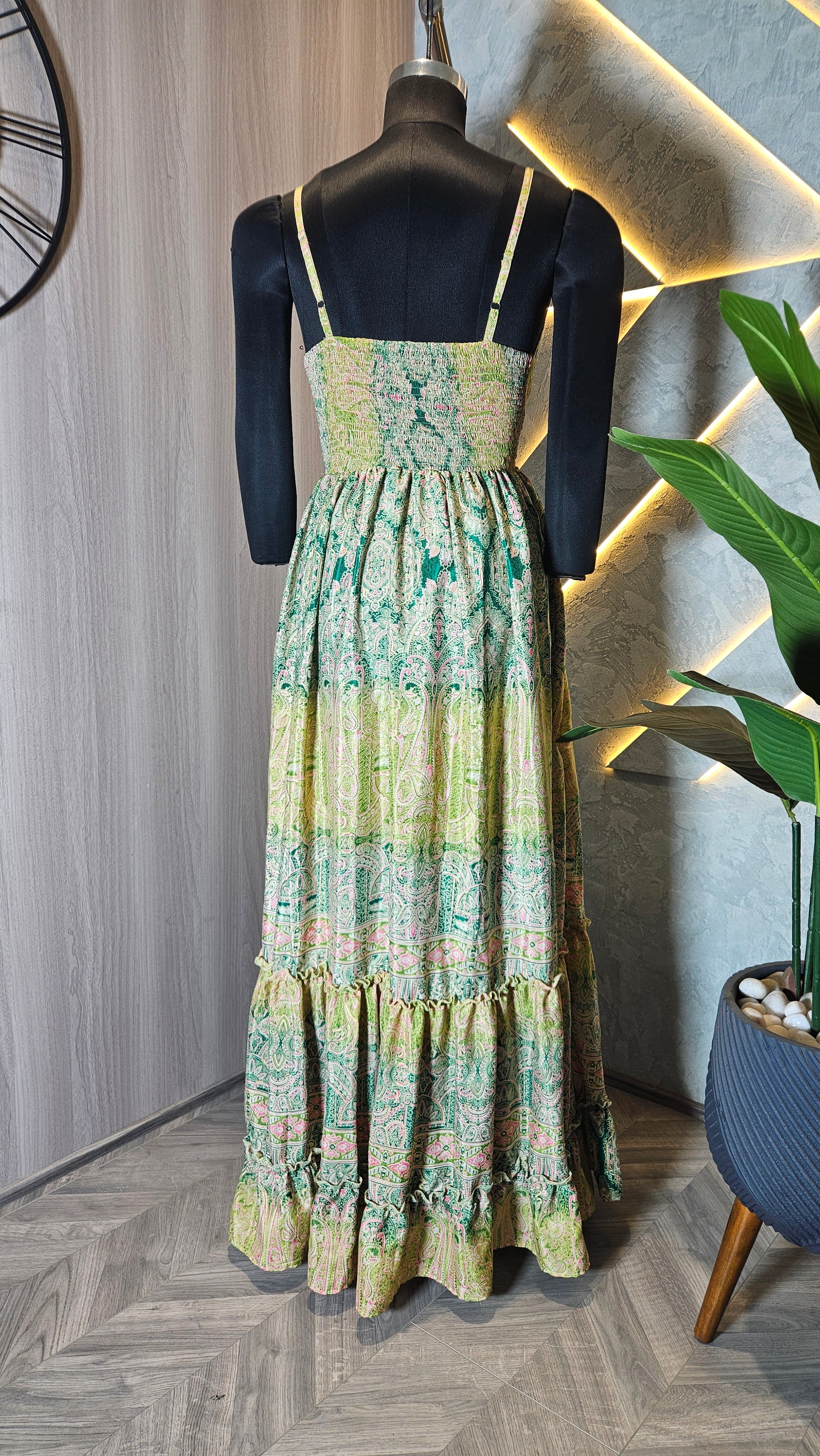 Design: Sleeveless boho-style top with ruffle hem, delicate shoulder tie details, and multicolor embroidered motifs