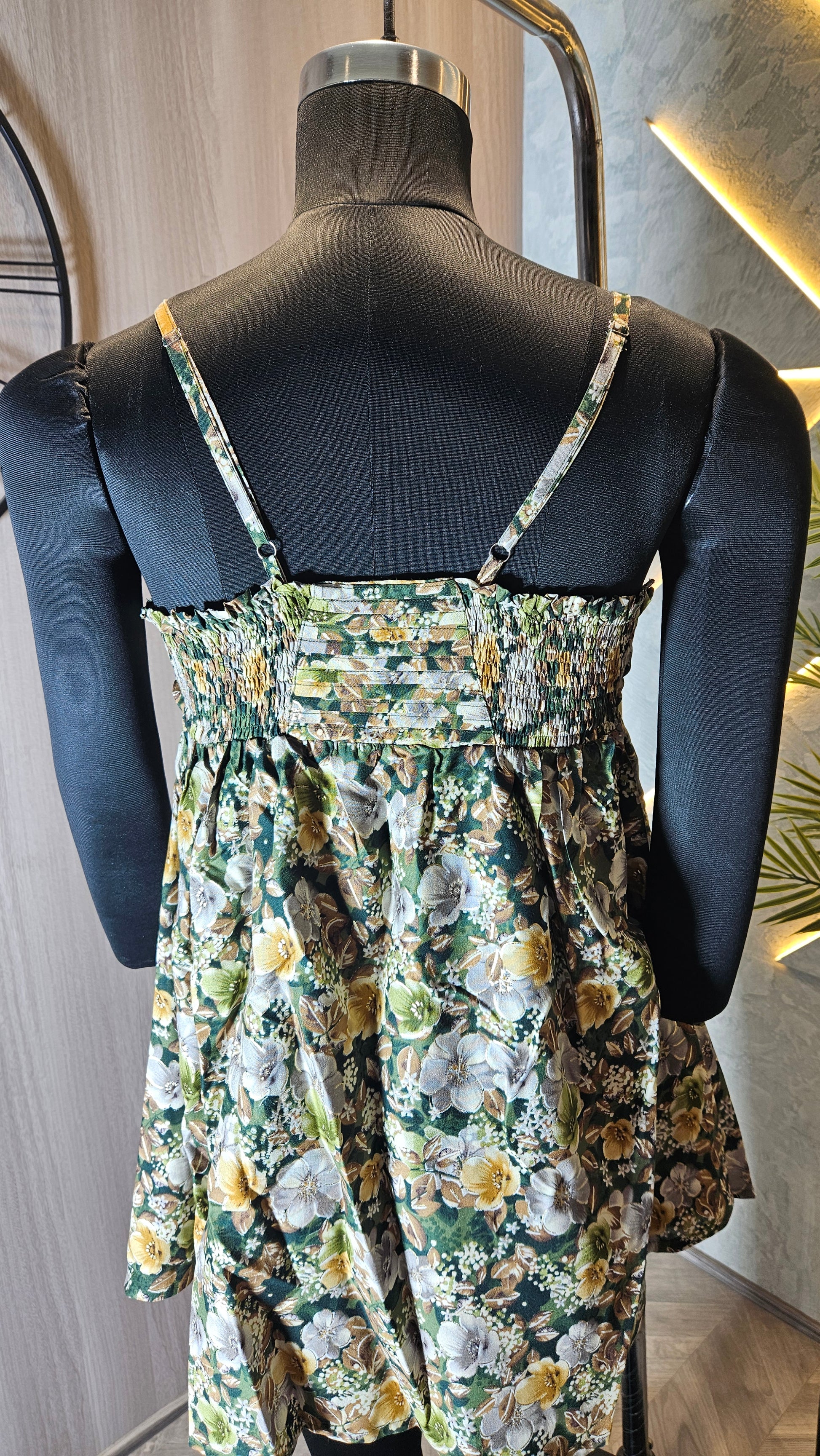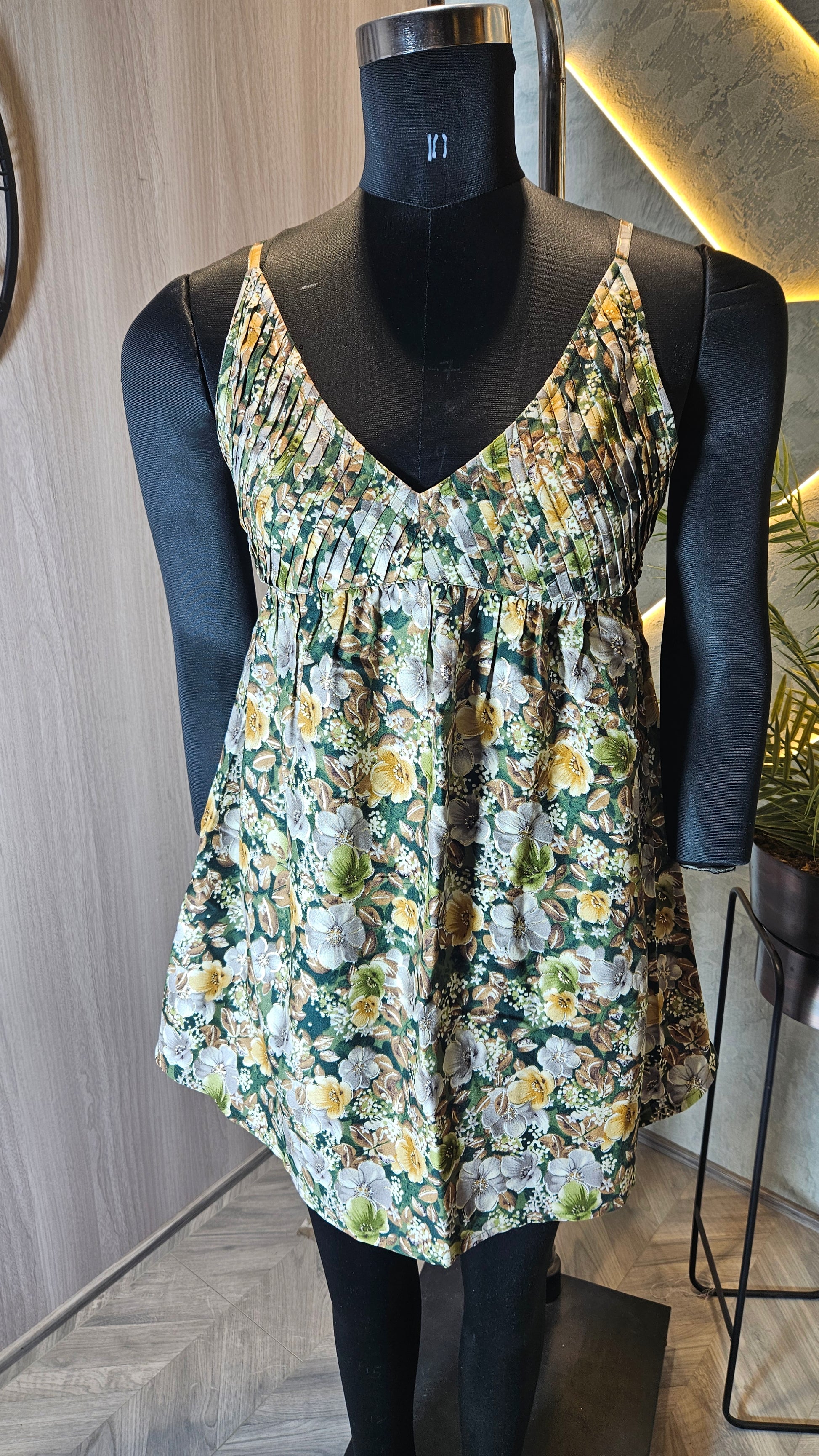Bring a touch of effortless elegance to your wardrobe with our Floral Pleated Empire Waist Sleeveless Top. Designed in India for global fashion-forward women, this lightweight top features a flattering V-neckline and intricately pleated bust, flowing into a relaxed empire waist silhouette. The vibrant floral print in earthy greens, yellows, and whites adds a fresh, bohemian charm perfect for casual outings, resort wear, or summer events. Crafted from soft, breathable fabric, it ensures comfort and style in every season.
