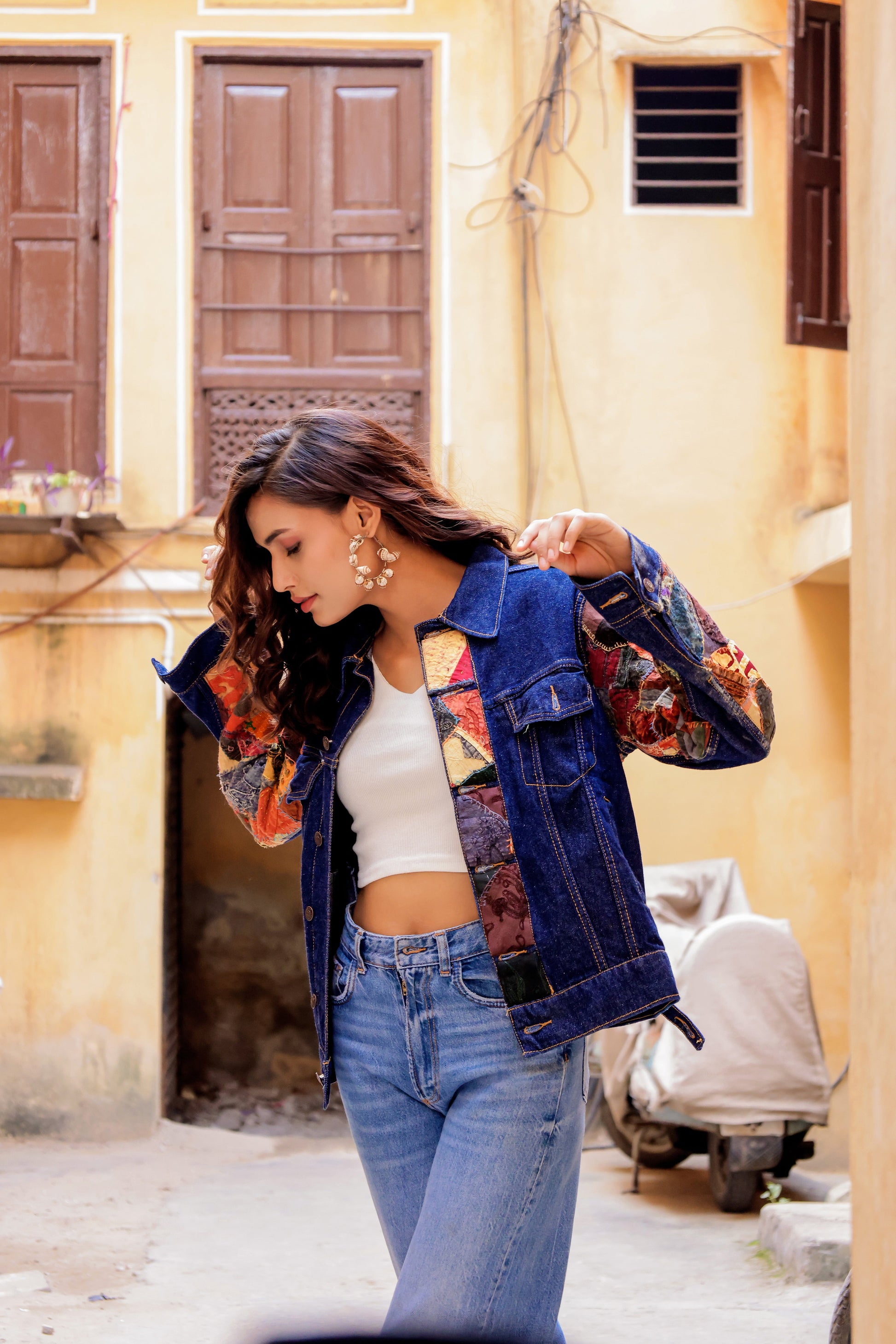 Elevate your wardrobe with this handwork patched denim jacket, a stunning transformation of a timeless classic into a bold, statement-making piece. Featuring a mix of luxurious fabrics and meticulous craftsmanship, this jacket is designed to stand out.